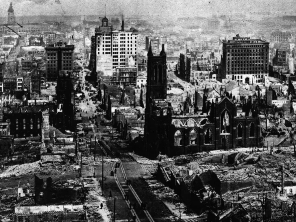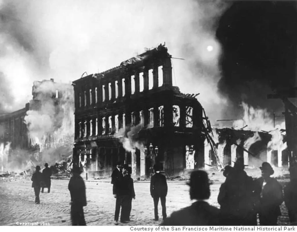 New Version of footage San Francisco 1906, A Trip Down Market Street, Shot on April 14, 1906, four days before the San Francisco earthquake and fire. From the front of a cable car, a motion picture camera records a trip down Market Street, San Francisco, California, from a point between 8th & 9th Streets, Eastward to the cable car turnaround at the Ferry Building.